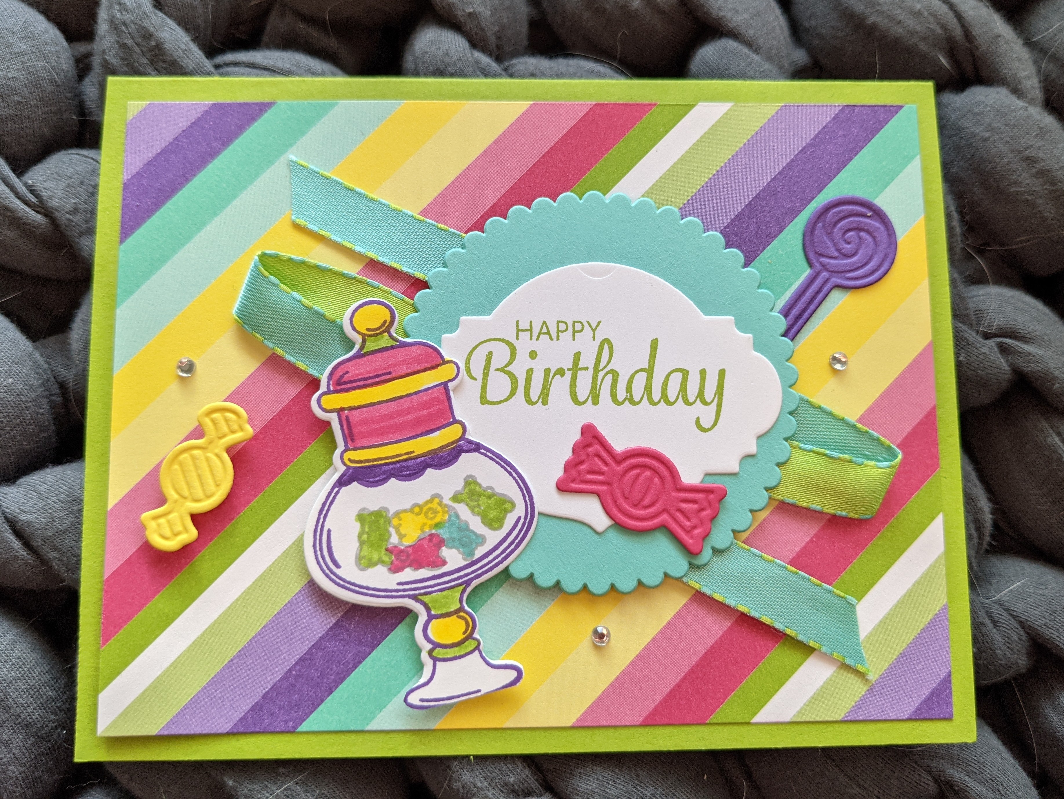 I am dreamin’ of travel today! I dream of visiting a beach and staring at the water. I would prefer something on the southern coast of California or Caribbean, but really anywhere warm with a coast would be acceptable. 🙂 My obsession with water doesn’t just end with travel! Coastal Cabana is my all time favorite color. It reminds me of the tranquil water of the Caribbean. I was beyond excited when it was brought back into the permanent color line up for Stampin’ Up. In my personal quest to use my DSP stash and use stamps I have had for years and not touched (yikes!), I found this Coastal Cabana DSP. I had forgotten how amazing the How Sweet It Is paper and Sweetest Thing stamps & coordinating are! The bright colors of the paper are make me sad I didn’t buy more of it before it retired! I’ll have to keep my eye on the SU! Clearance rack! Thanks to the Allsorts Challenge for challenging projects made with “your favorite color”.